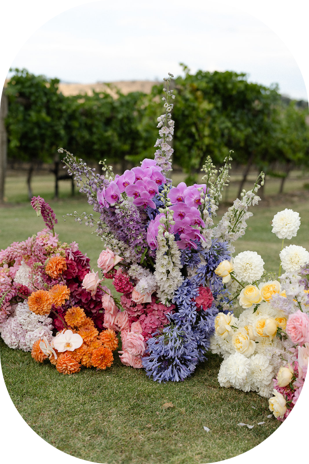We curate florals that flow from ceremony to celebration that accent your day with colour, texture and scent.